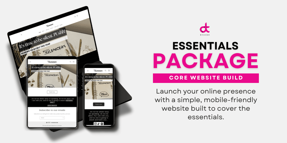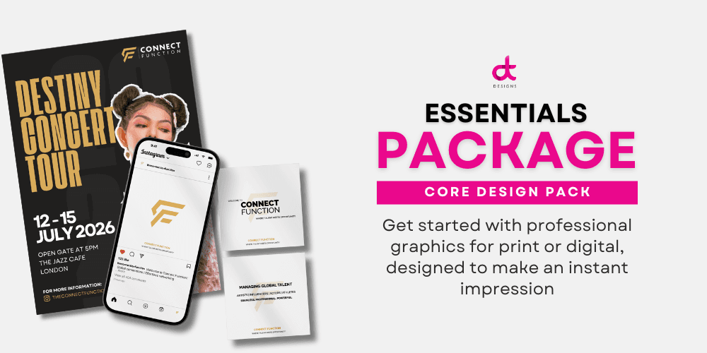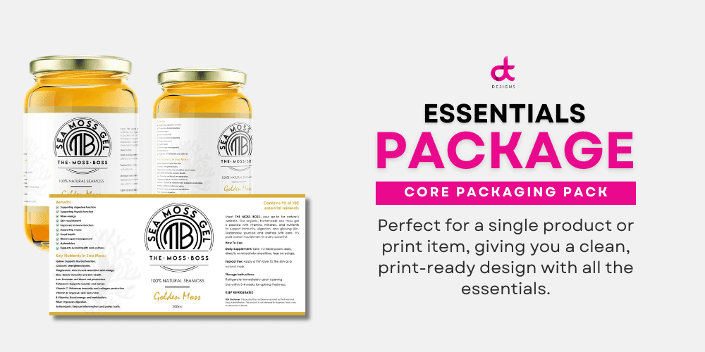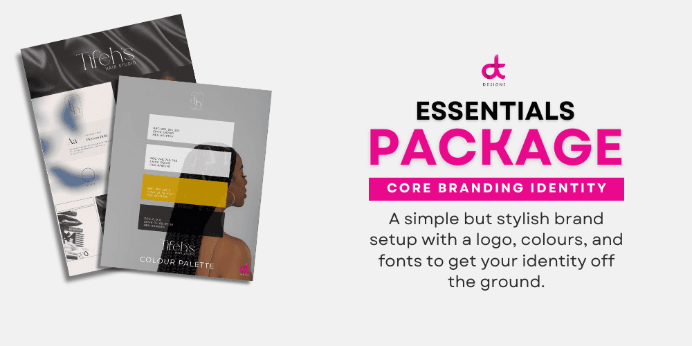 Essentials – Starter Kit | Perfect for getting started, the Essentials tier gives you the essentials to launch your brand, product, or online presence with style and clarity—covering both digital and print-ready designs.